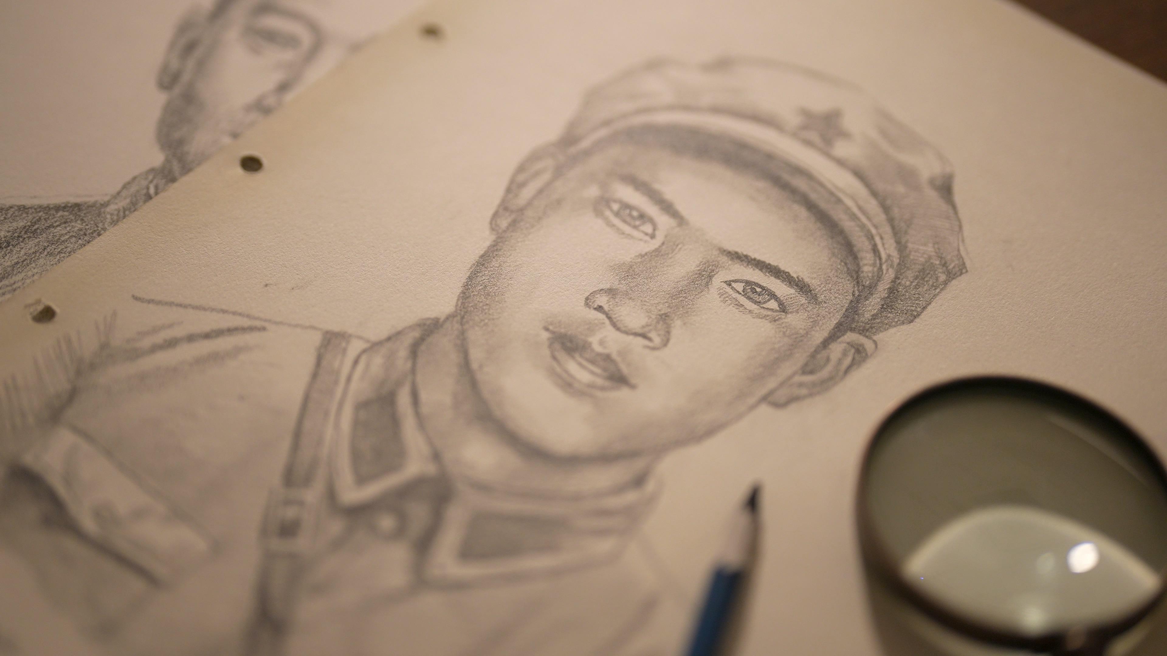 烈士丁继法牺牲时年仅25岁,未曾留下一张照片。林宇辉凭着其亲友的零星回忆,一点点还原那张湮没在70余年前战火硝烟里的青春脸庞。